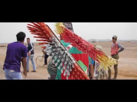 We saw an opportunity to do something more organic with a large space in the centre of the camp. Inspired by the diagonal lines of the camp’s informal walkways, we began drawing a giant mosaic. We were hoping it would large enough so as to be visible on Google earth — and also that people would enjoy walking long distances more if they could meander over beautiful shapes and colours.