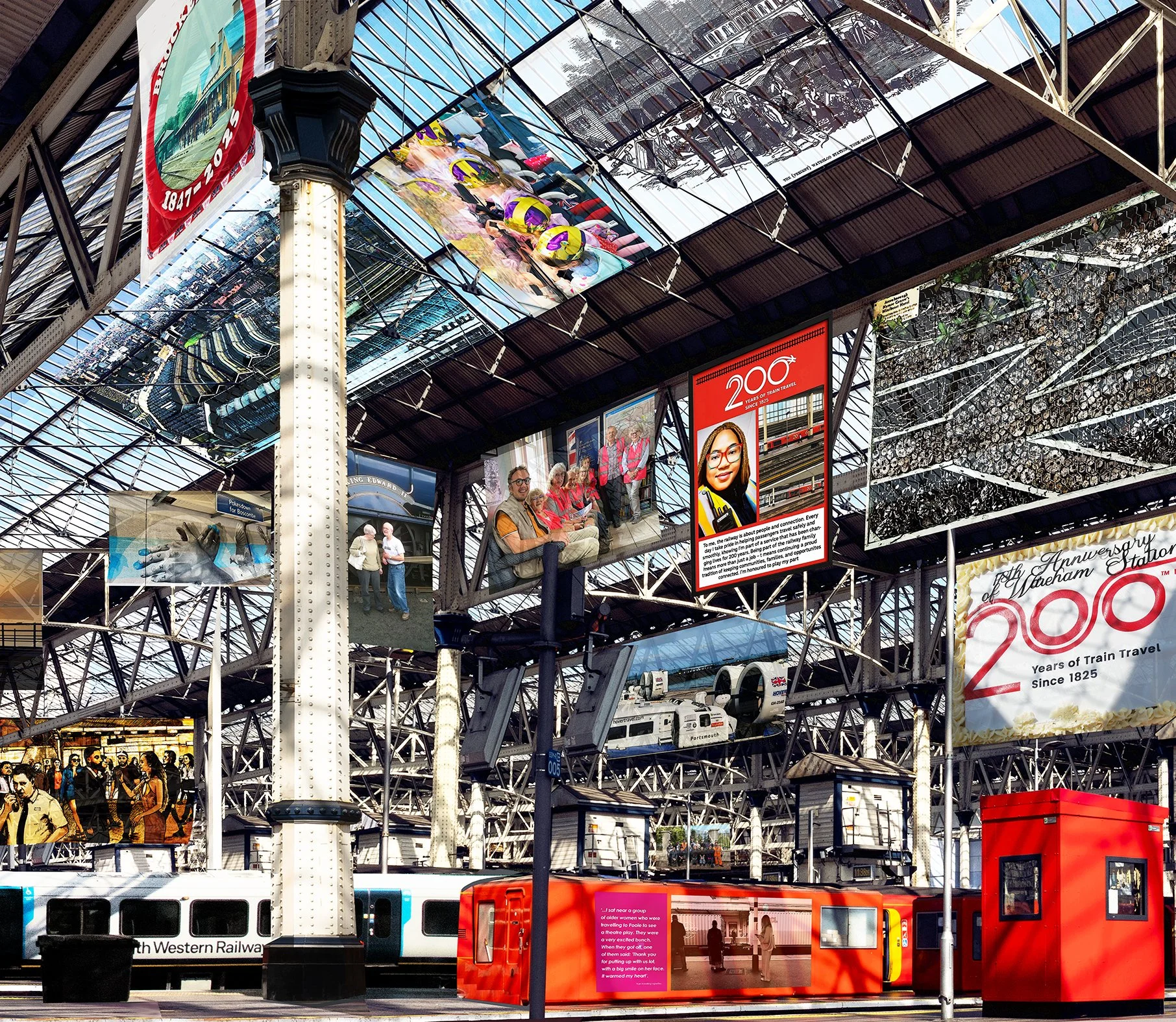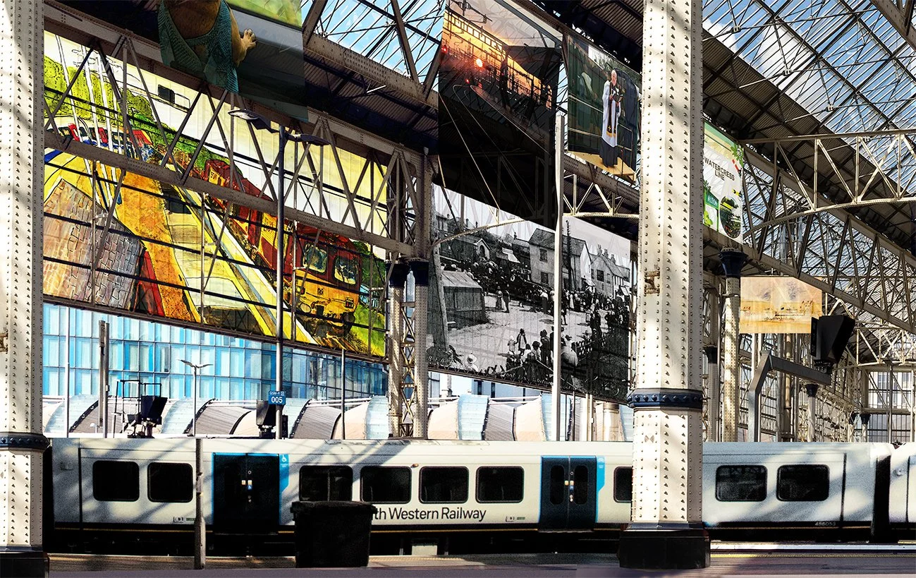 Commissioned by Network Rail and South Western Railway, the mural is a joint declaration of love from those who know the network best. Installed in Waterloo Station, the work transforms the concourse into a cathedral-like space, echoing the monumental architecture that has framed countless arrivals and farewells.
