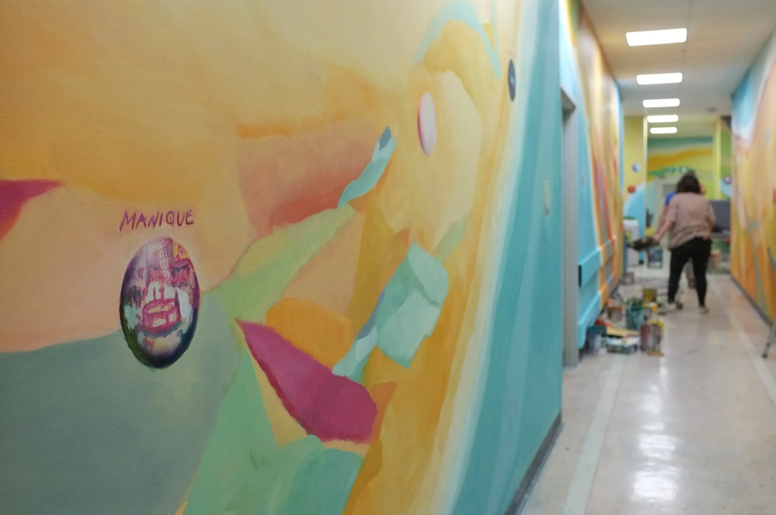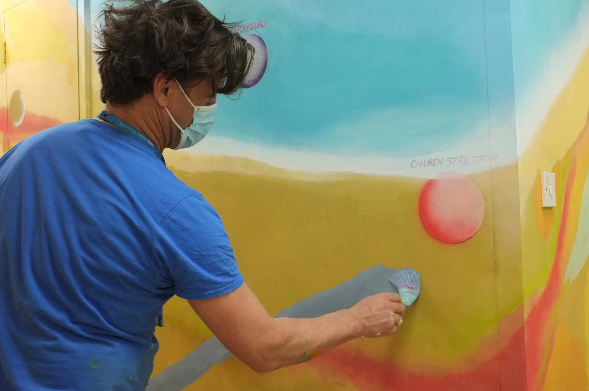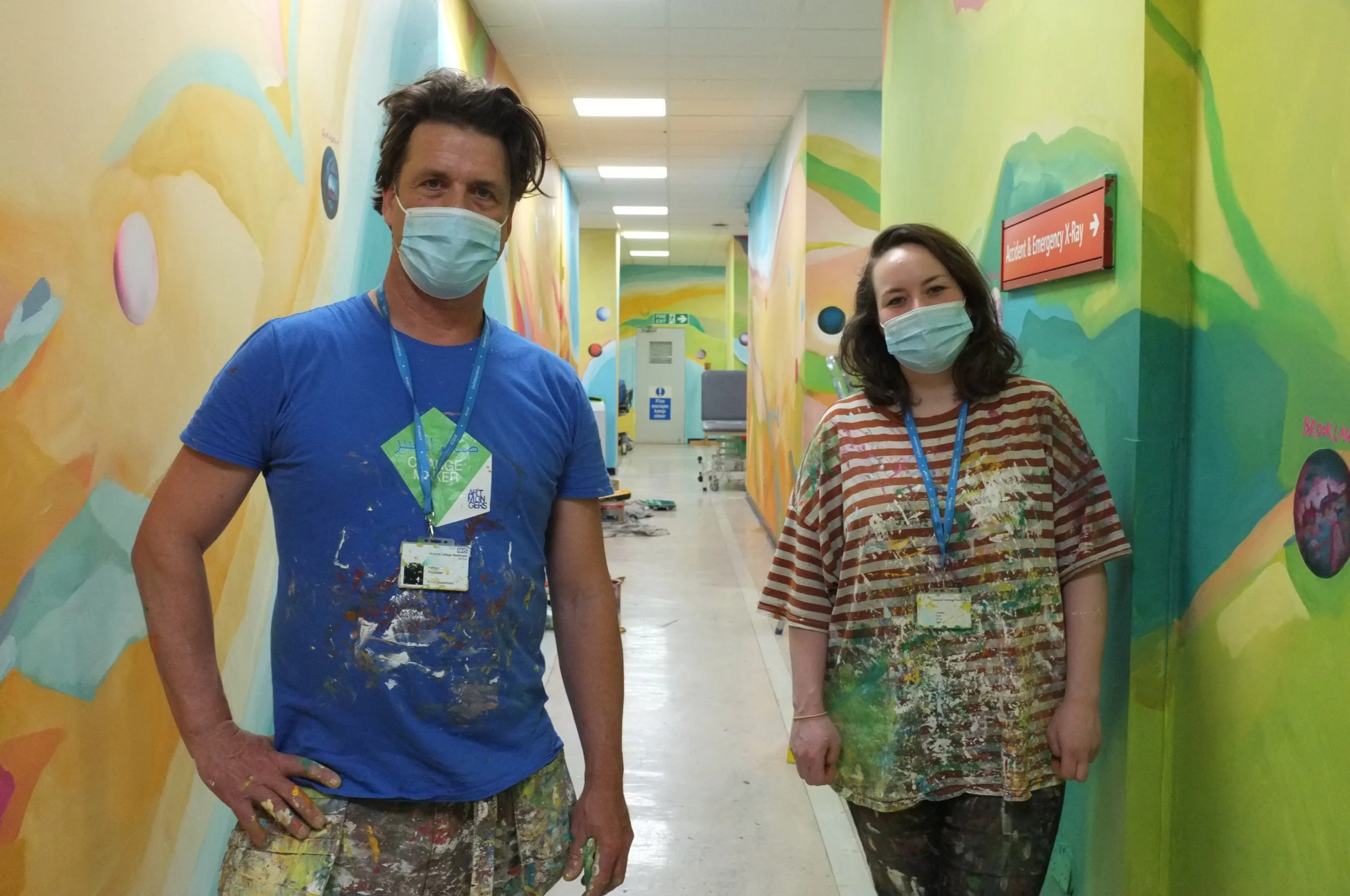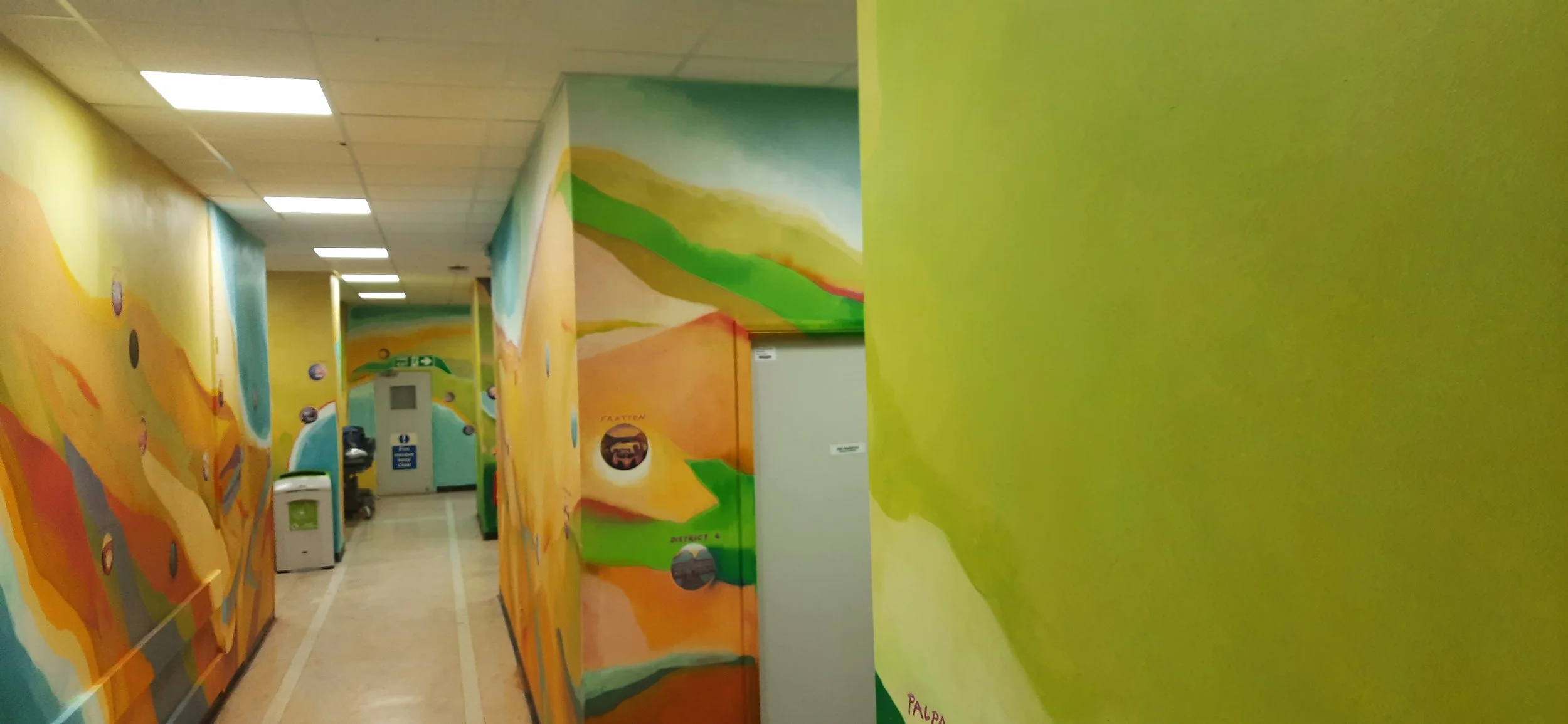 We were approached by Doctor Anu Mitra to paint a mural that would brighten up this A&E corridor, as a small gesture of gratitude for the incredible work hospital staff had done during the pandemic.