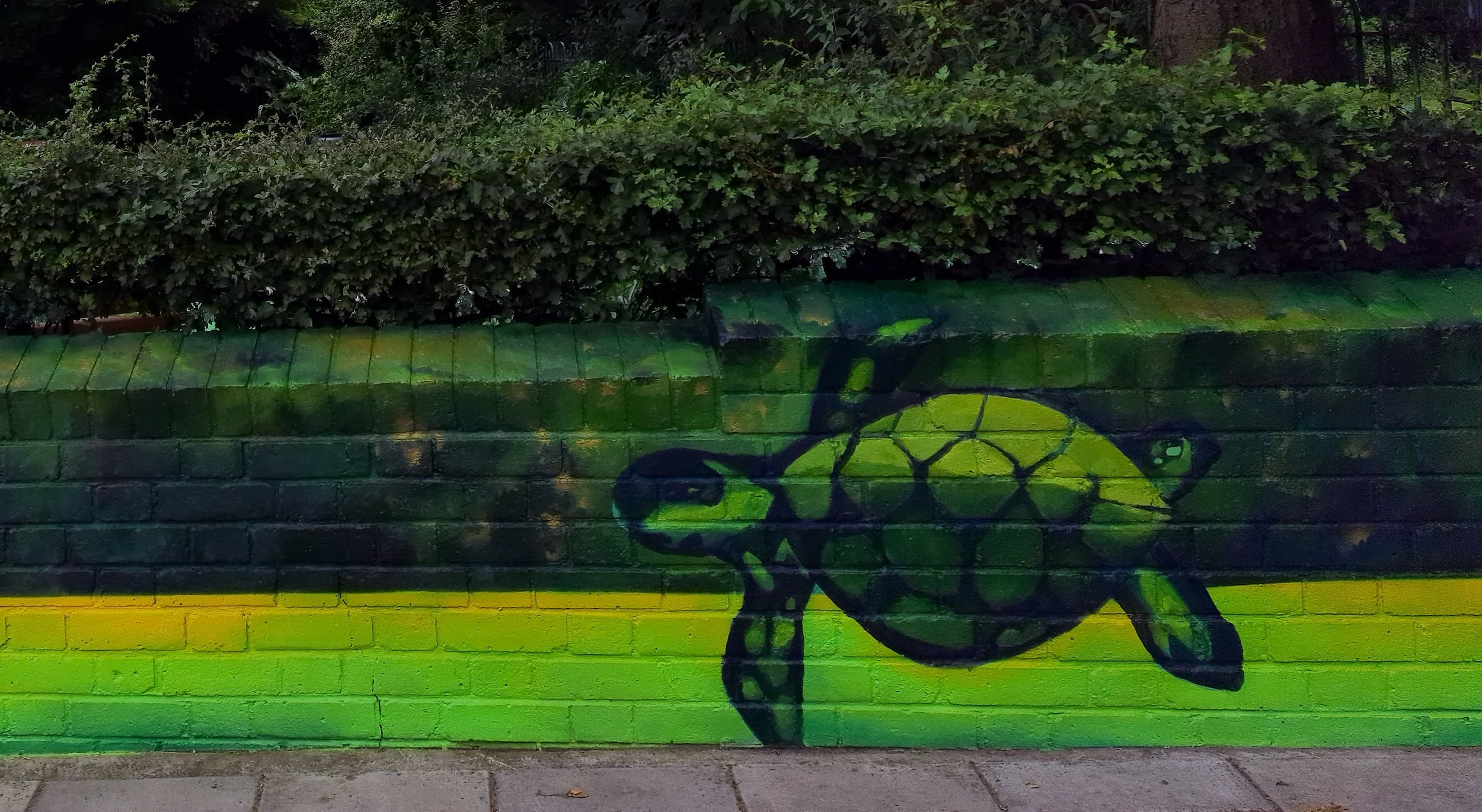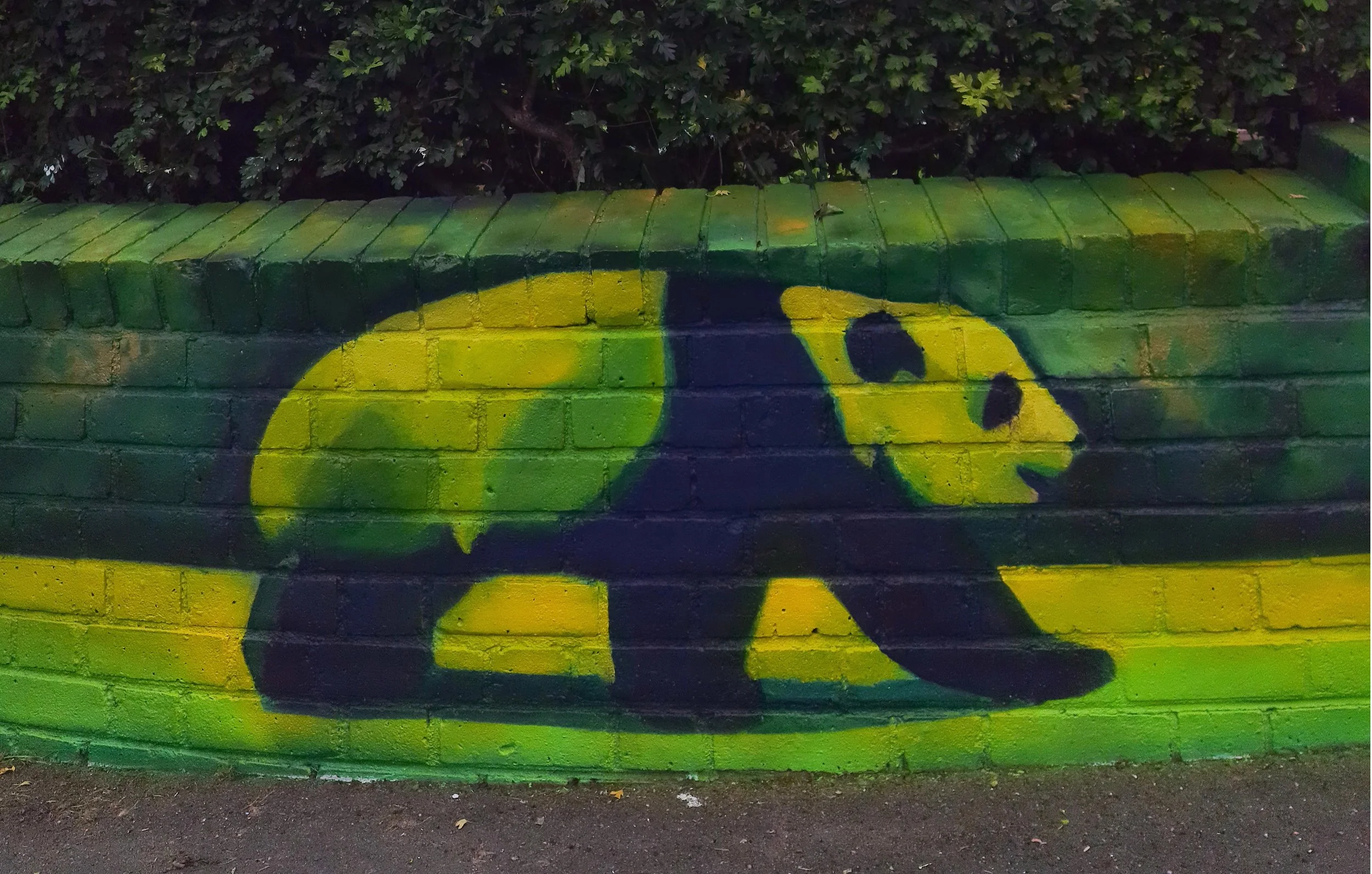 The wall’s low height seemed challenging at first. But then we realised that embracing the hedge would double our canvass — so we began to incorporate the wall’s surroundings into our artwork. While researching similar projects, we came across wonderful topiary sculptures of elephants and other animals, which inspired us to start thinking about the many animals and habitats currently under threat from the climate crisis.