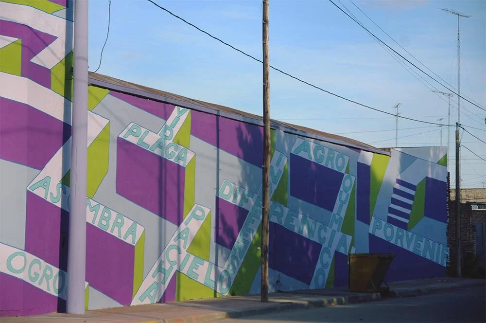This large-scale participatory mural was developed to address the specific environmental worries held by a group of people from Oncativo, a town in Cordoba, Argentina.