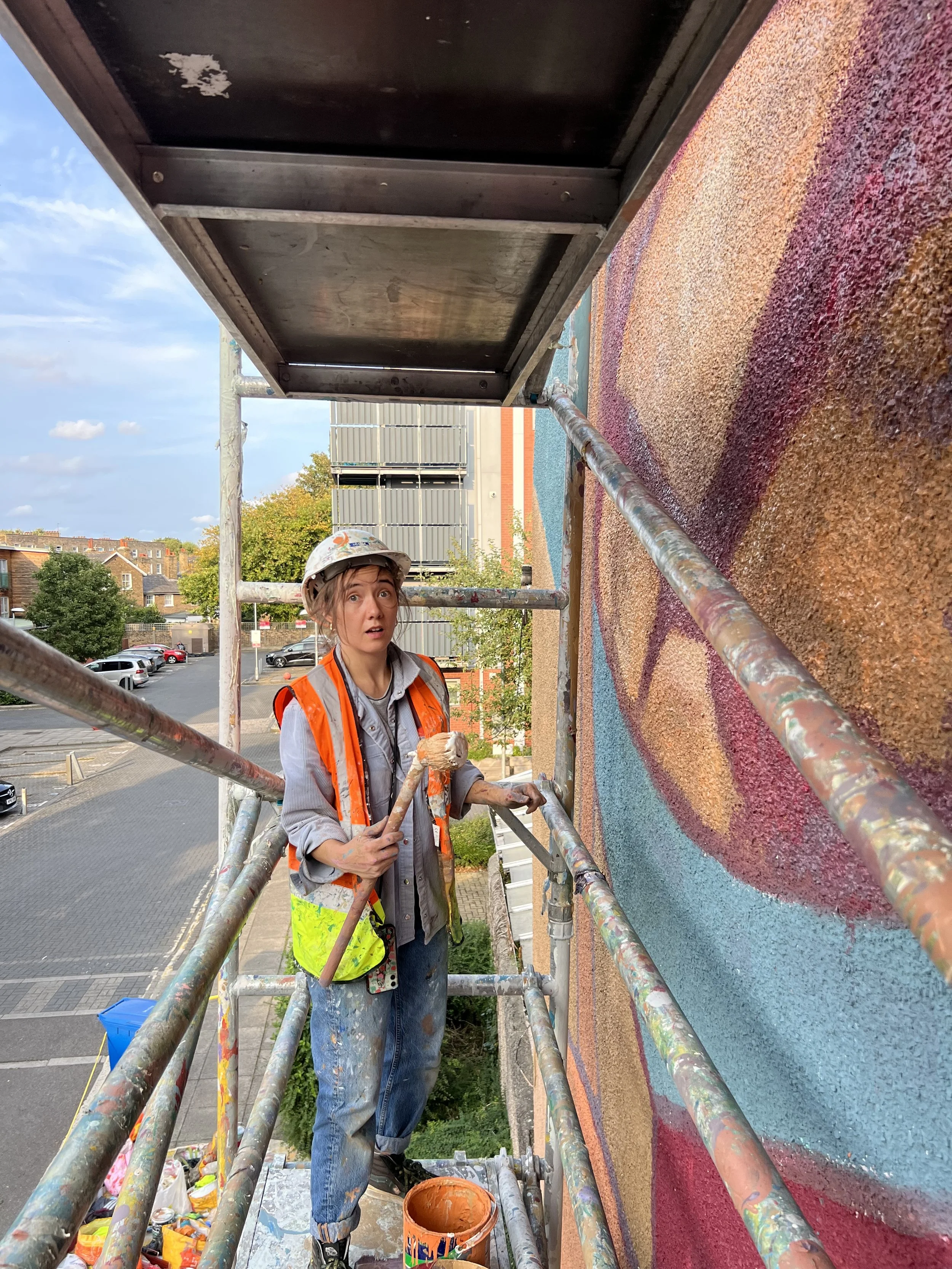 This mural was self-initiated with no external funding, using 70% recycled paint and the landlord’s permission. Daniel Barna generously contributed £500 towards paints and the landlord £150 towards onsite costs.
