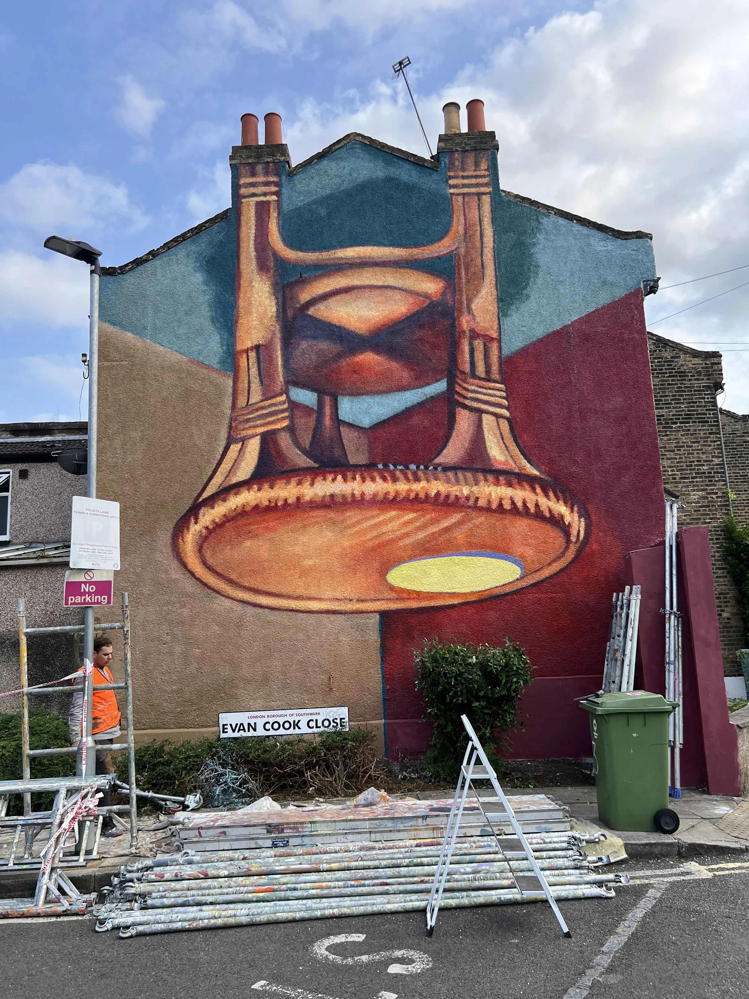 One of our volunteers, Luky Trenchard, said it was “an homage to the wall”, and relates to a wider family of Artmongers murals that use their building geometries as direct inspiration.