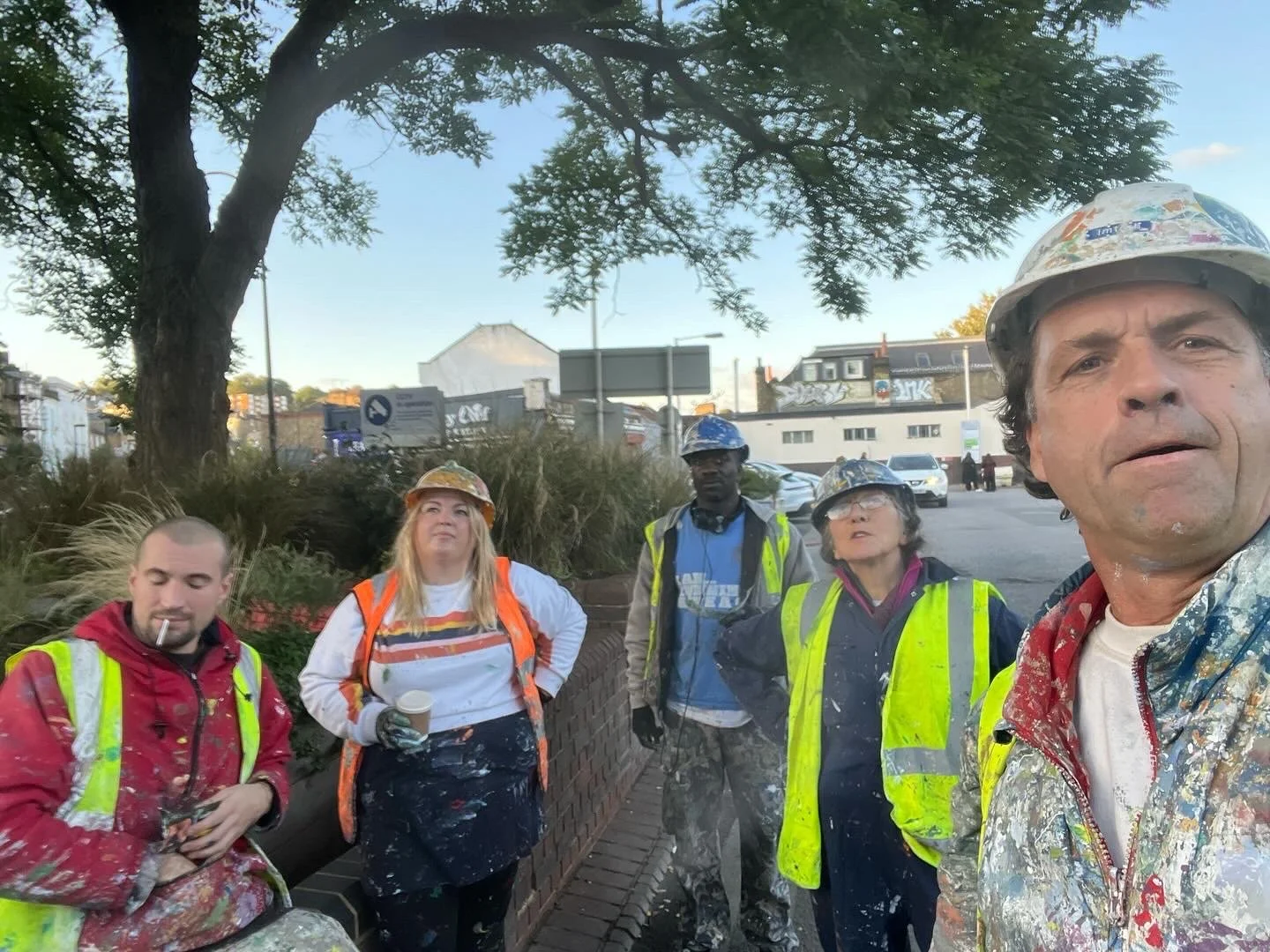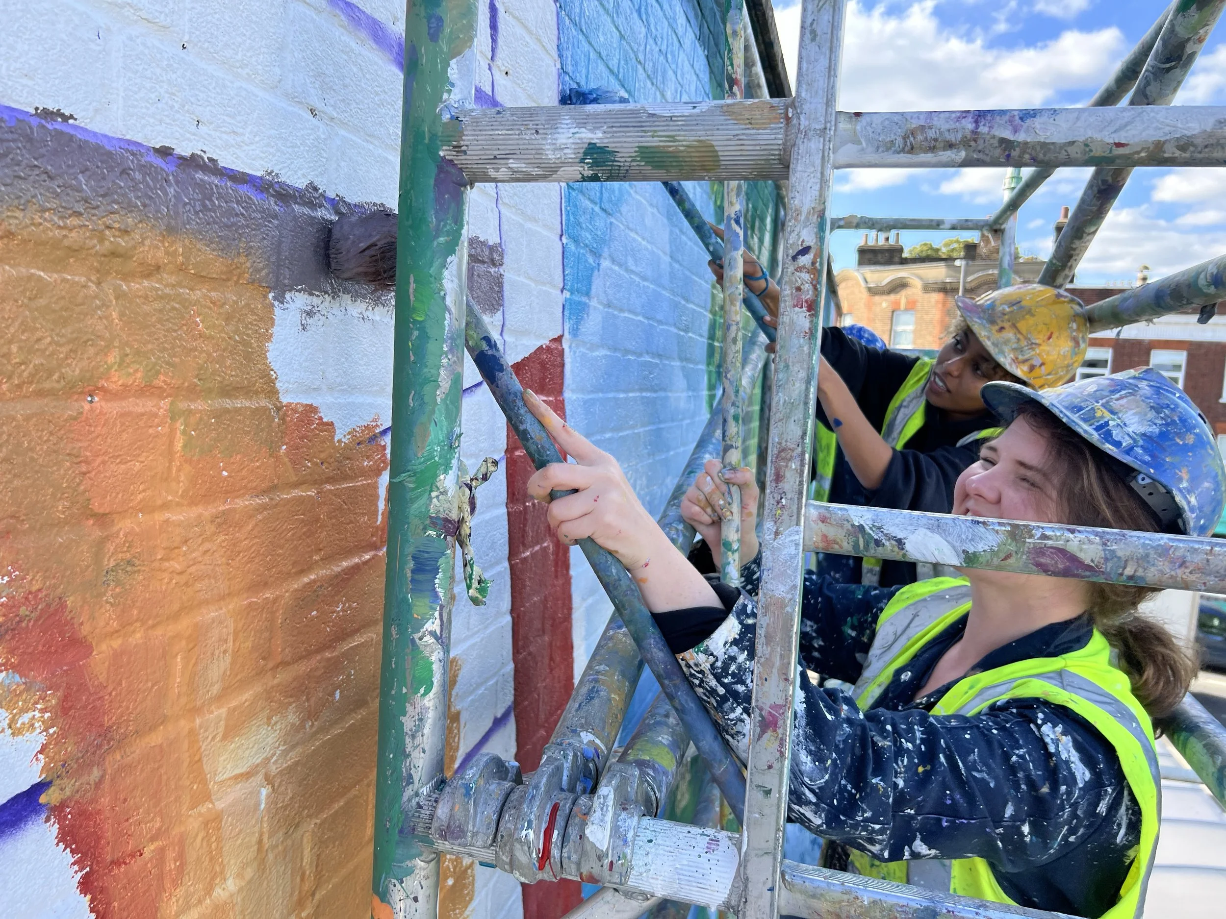 Painting got underway in September 2024, helped by a team of local volunteers and graduates of London School of Muralism.