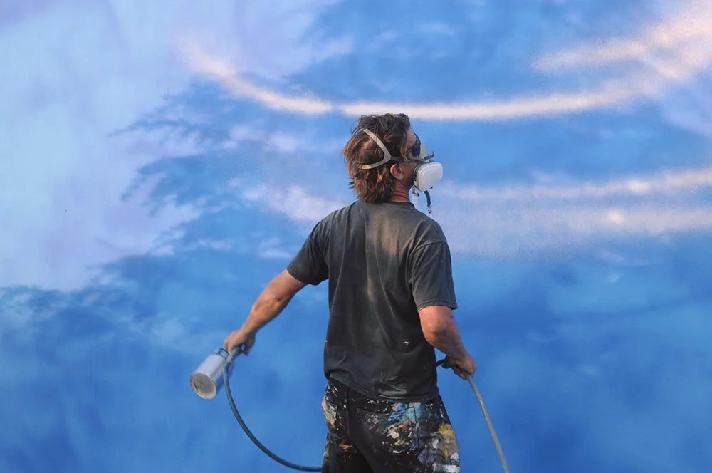 We engaged children with special needs to help us with the base coat. They were thrilled to get their hands the spaying equipment.