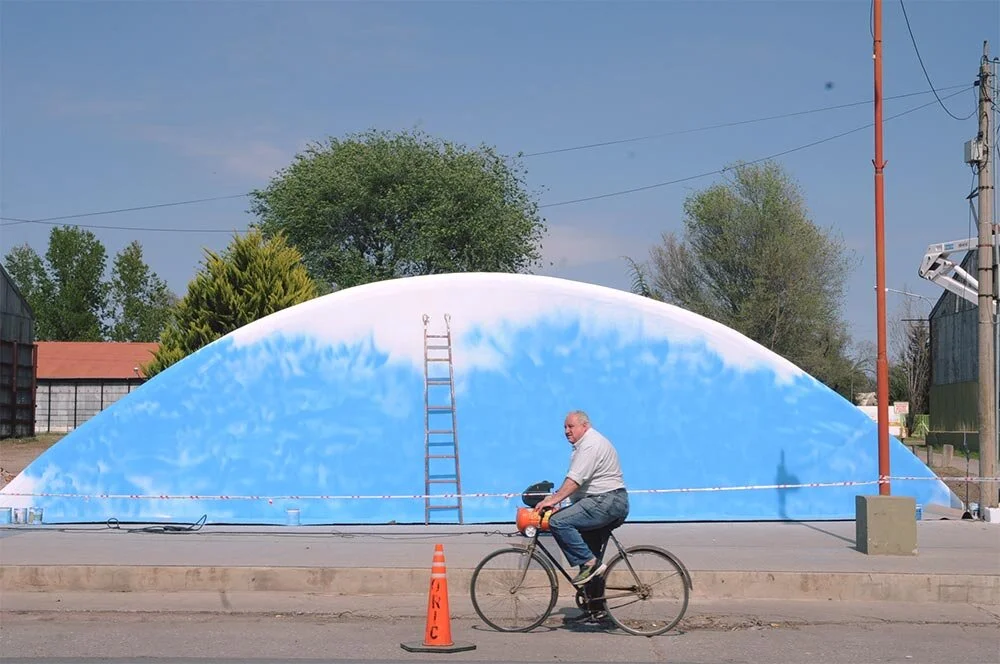 This piece used to stand on the edge of a long route that divides Argentina from North to South. It looked as if a mini-planet earth was rising from the pavement. Unfortunately, it was now been replaced - always a risk with street art.