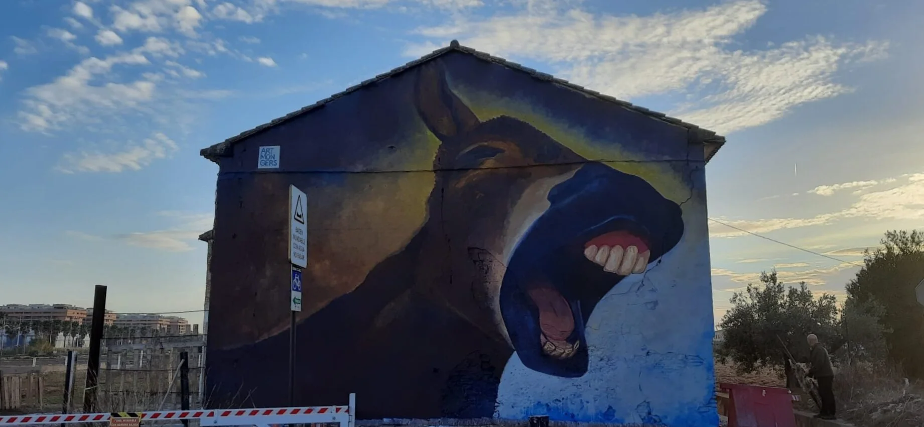 Today, the Yawning Donkey sits on a rural house in Alboraia, Valencia, surrounded by a newly expanded motorway and a busy road that leads to the beach.