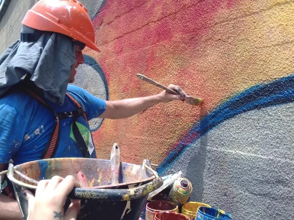 One of the two Keys is our first proper anamorphic painting. It was lovely to paint above the bus terminal, with all the drivers looking up is disbelief. We have now heard the news that the building will become a Museum of Argentine Contemporary Art, which is amazing. The only question is whether or not they will keep our artwork…